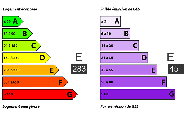 Consommation énergie primaire : 283 kWh/m²/an (Classe E)